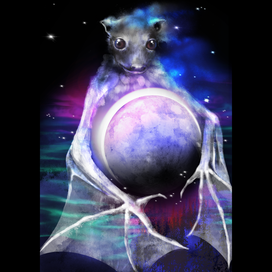 Ronin the Fruit Bat was inspired by a real life bat living at the Texas Bat Sanctuary. He became the face of my Vespertine Tarot Kickstarter Campaign, The artwork was sold as a limited edition signed print on archival cold-press art paper, with matte finish.