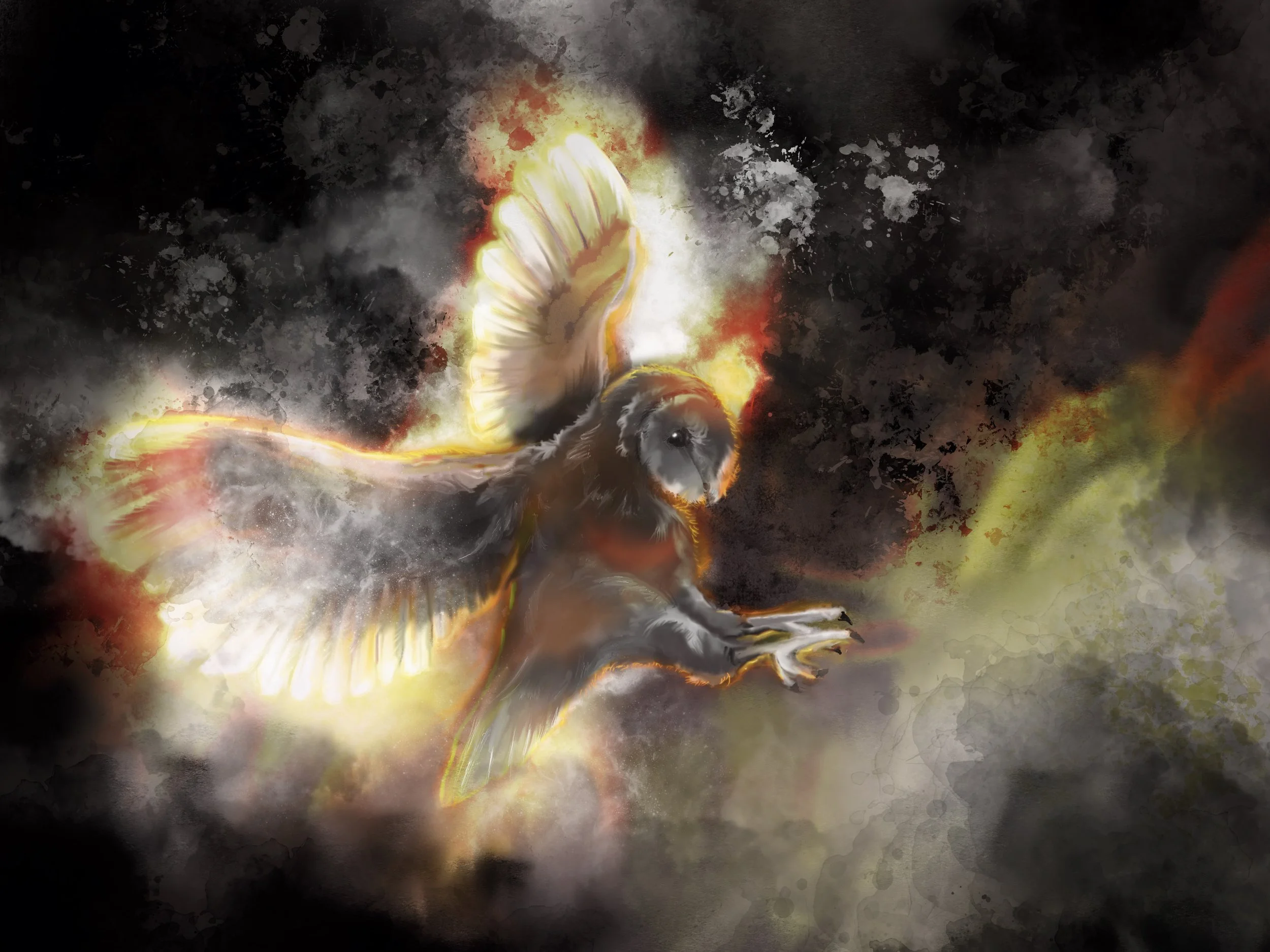 The elusive barn owl streaks across the night sky in this vibrant piece using Procreate and Apple Pencil.