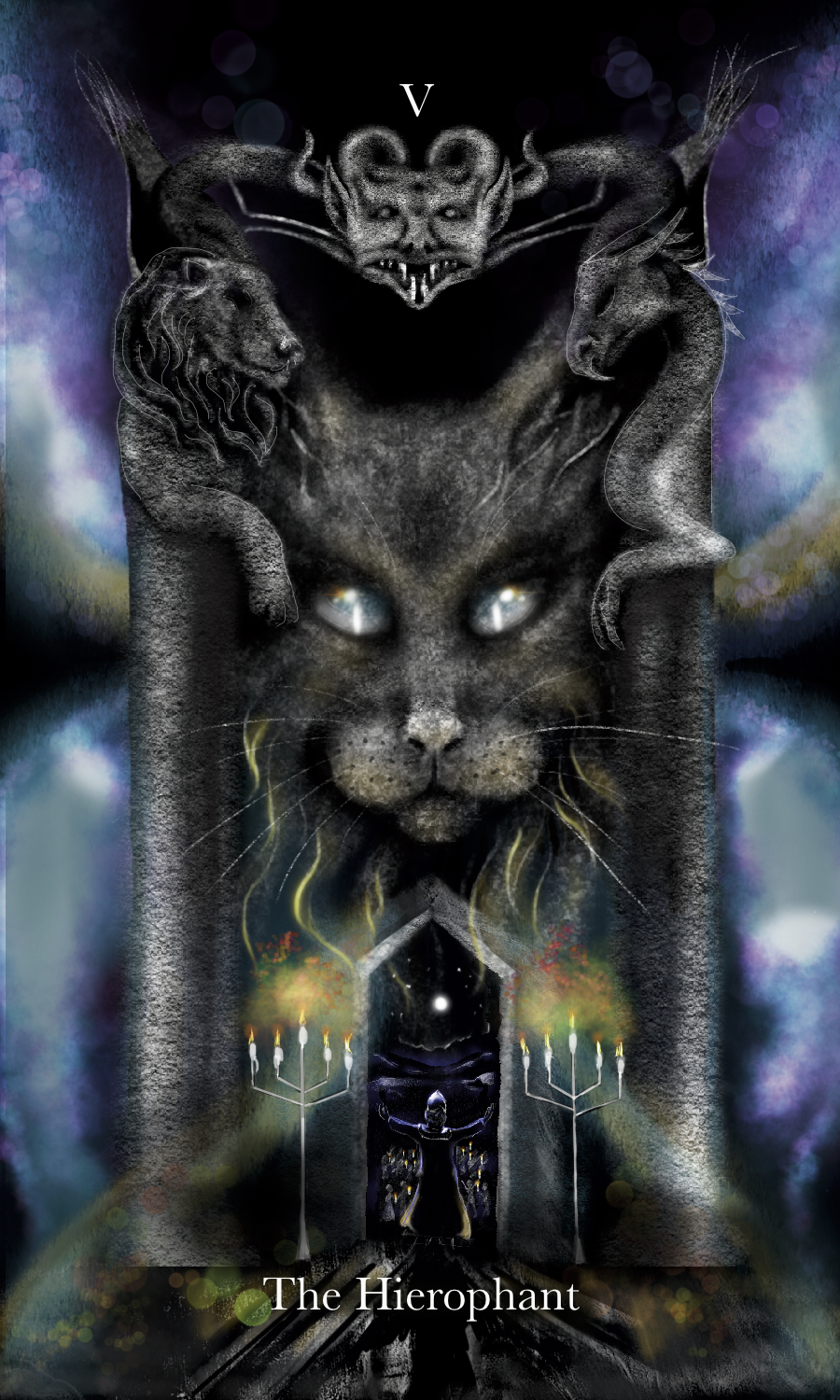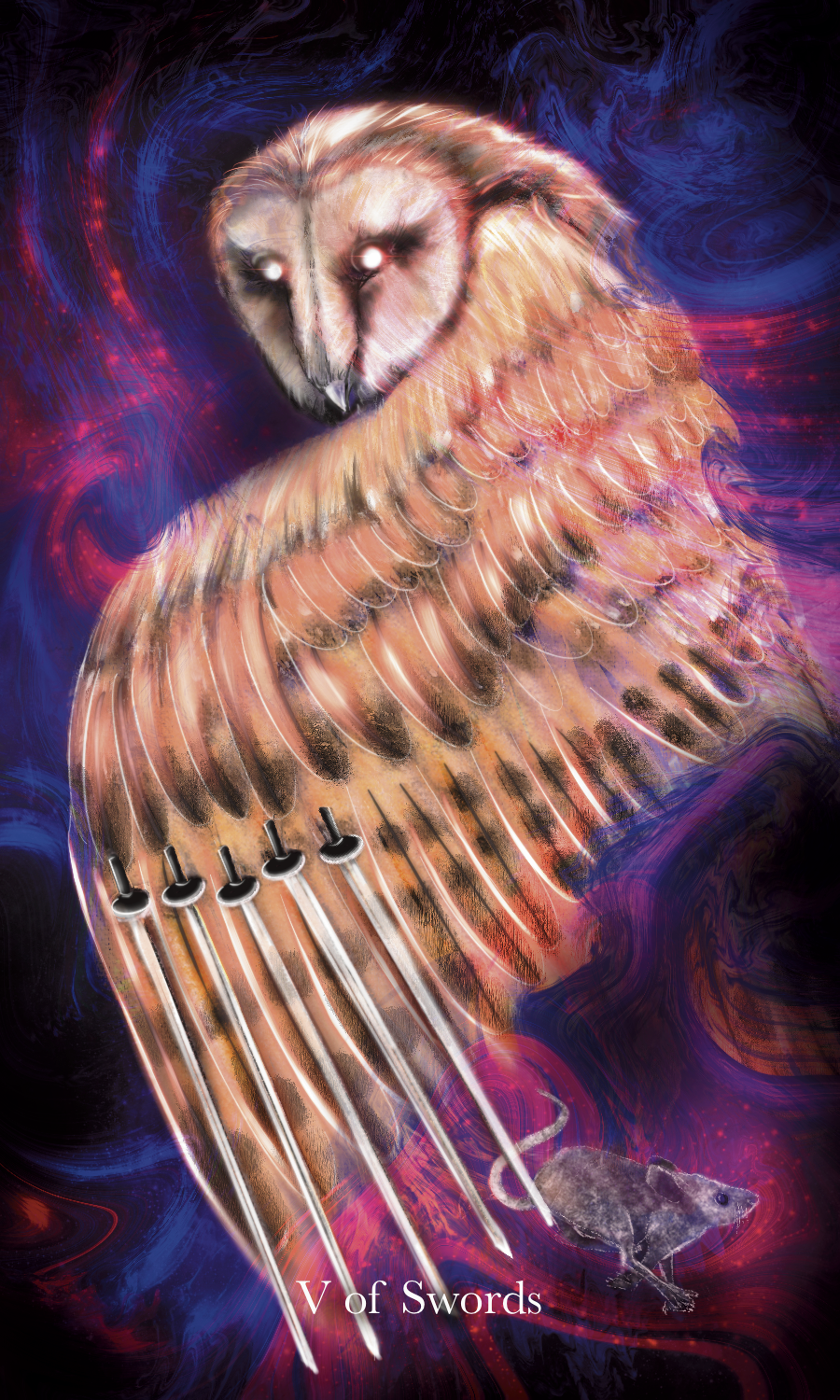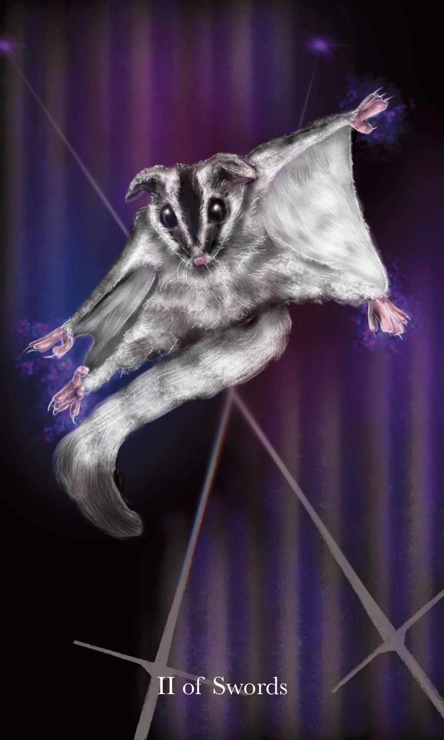 Vespertine Tarot’s Major Arcana are made up of fresh images alongside traditional meanings. Each card has a has a vespertine animal embodiment to it with other symbolic characteristics offered as human or anthropomorphic form.