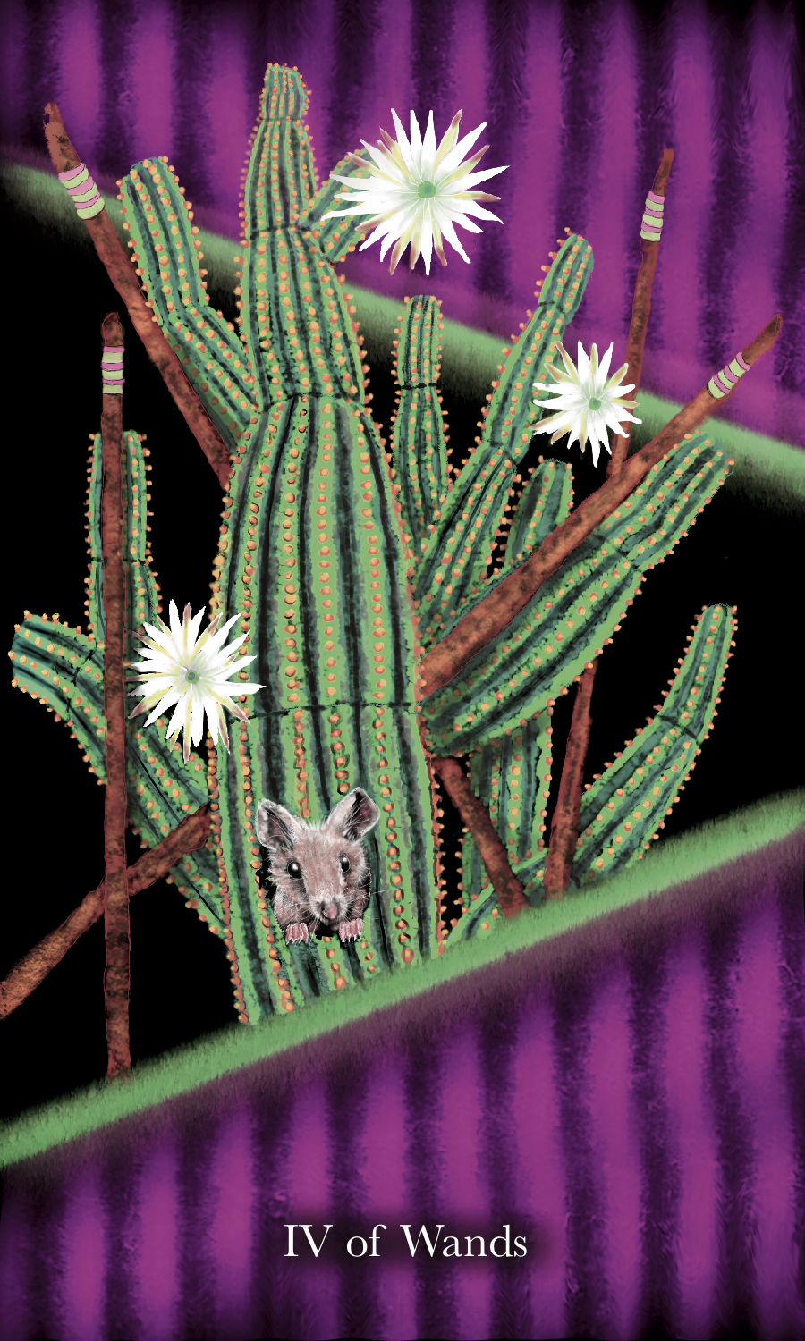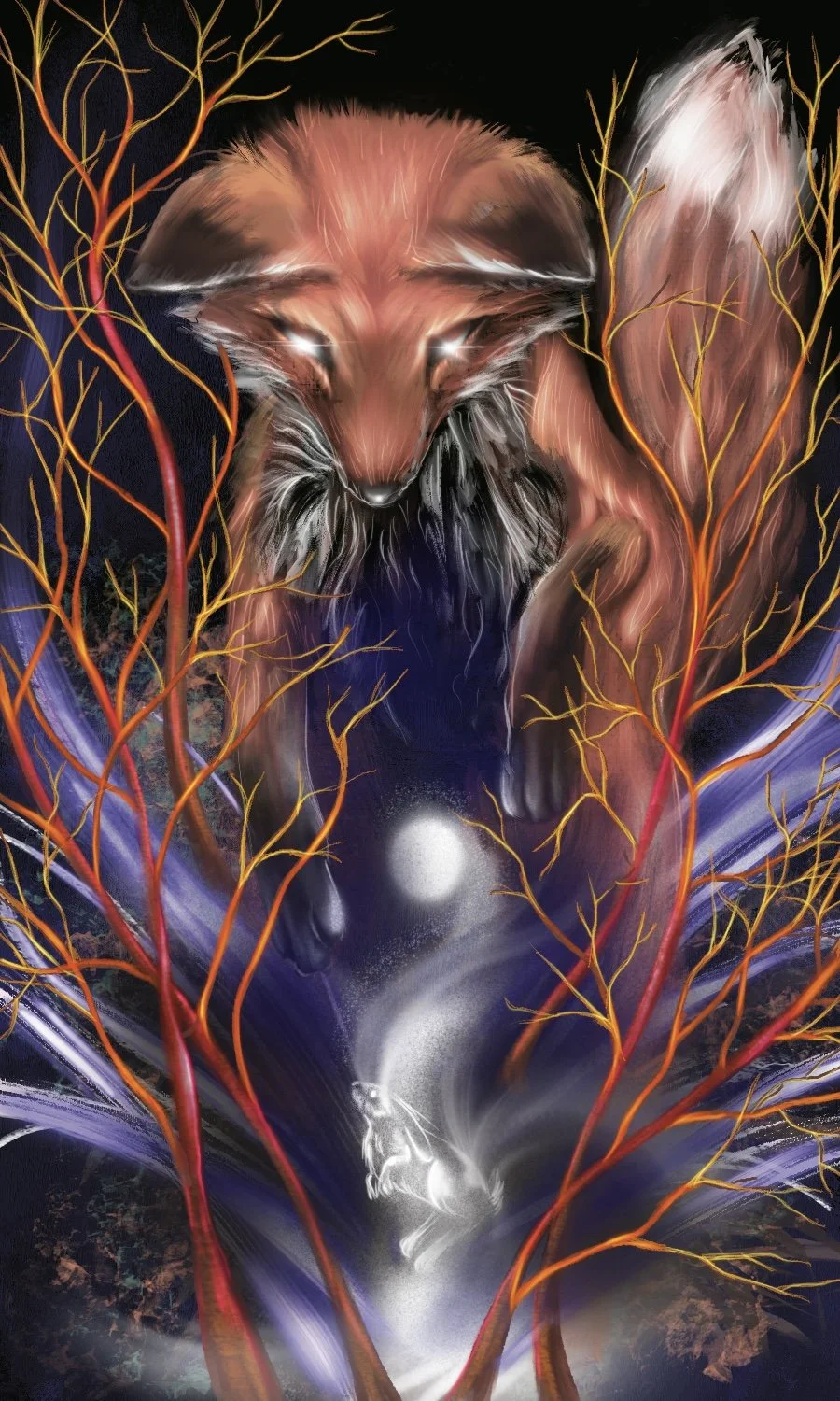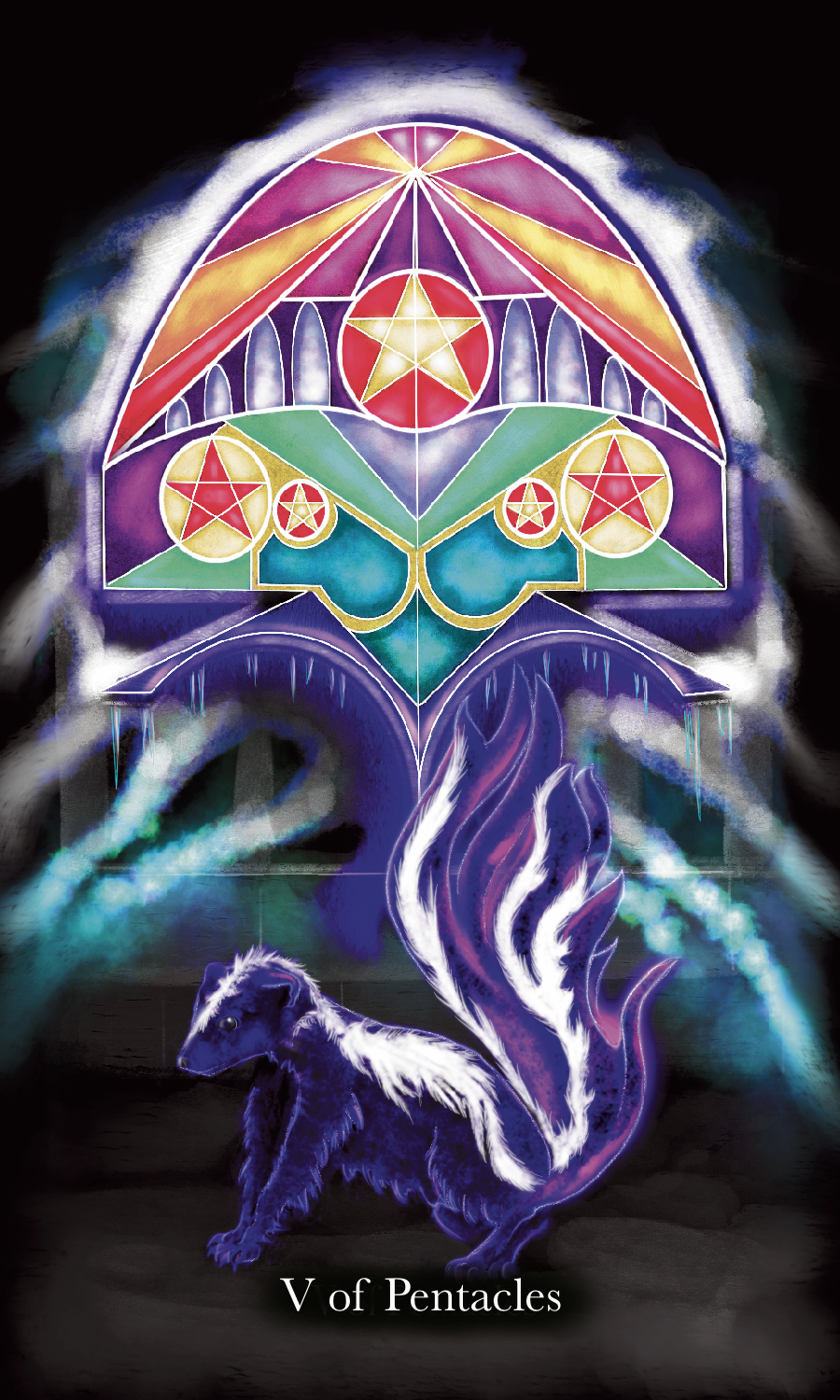 Vespertine Tarot’s Major Arcana are made up of fresh images alongside traditional meanings. Each card has a has a vespertine animal embodiment to it with other symbolic characteristics offered as human or anthropomorphic form.